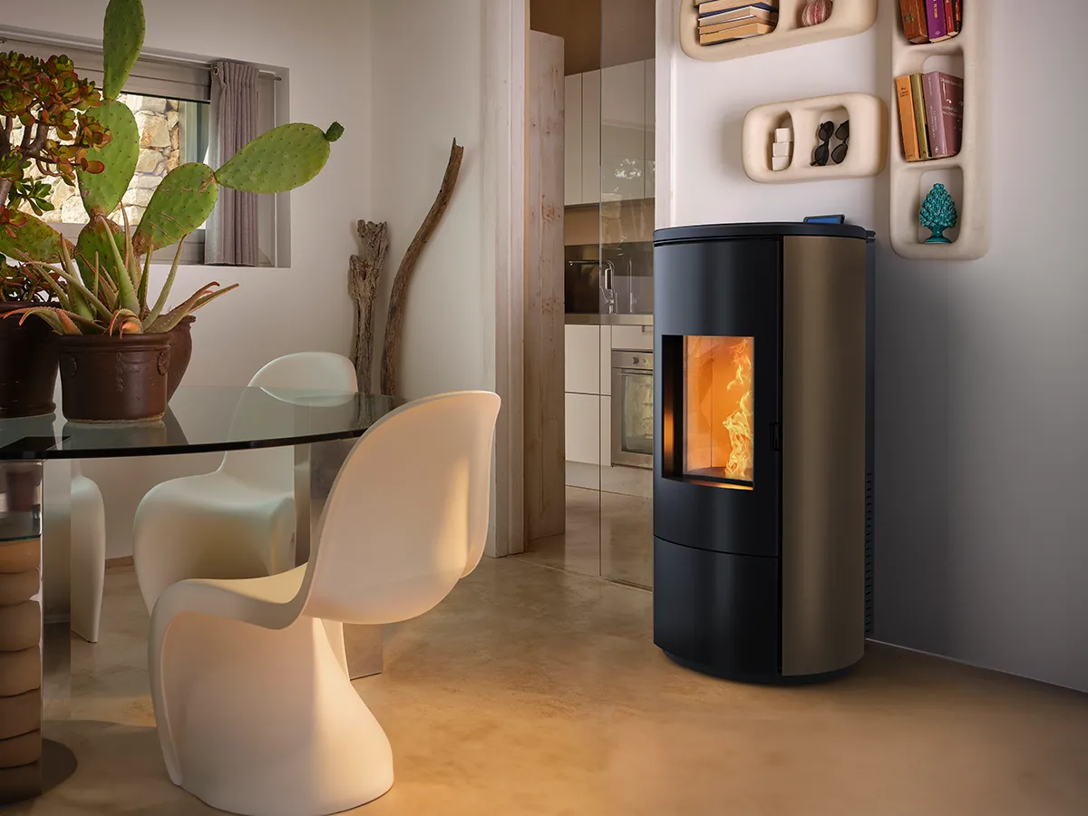 Poêle à granulés à convection naturelle, ventilation avant et un conduit arrière de 60 mm (en option).